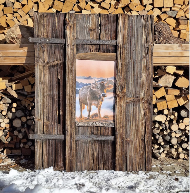 Die Nächste Scheunentür mit Leinwandbild ist fertig Dieses schöne Stück ist richtig „Sonnenverbrannt“ und bringt durch die Optik unsere Kuh bei Sonnenuntergang richtig zur Geltung
