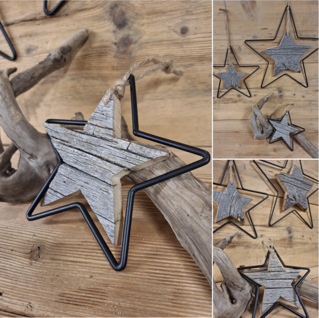 Schwarzmetall-Altholz was für eine tolle Kombination Diese Metallängesterne mit handgefertigten Altholzsternen gibt’s in 3 verschiedenen Größen (14cm, 24cm, 34cm)