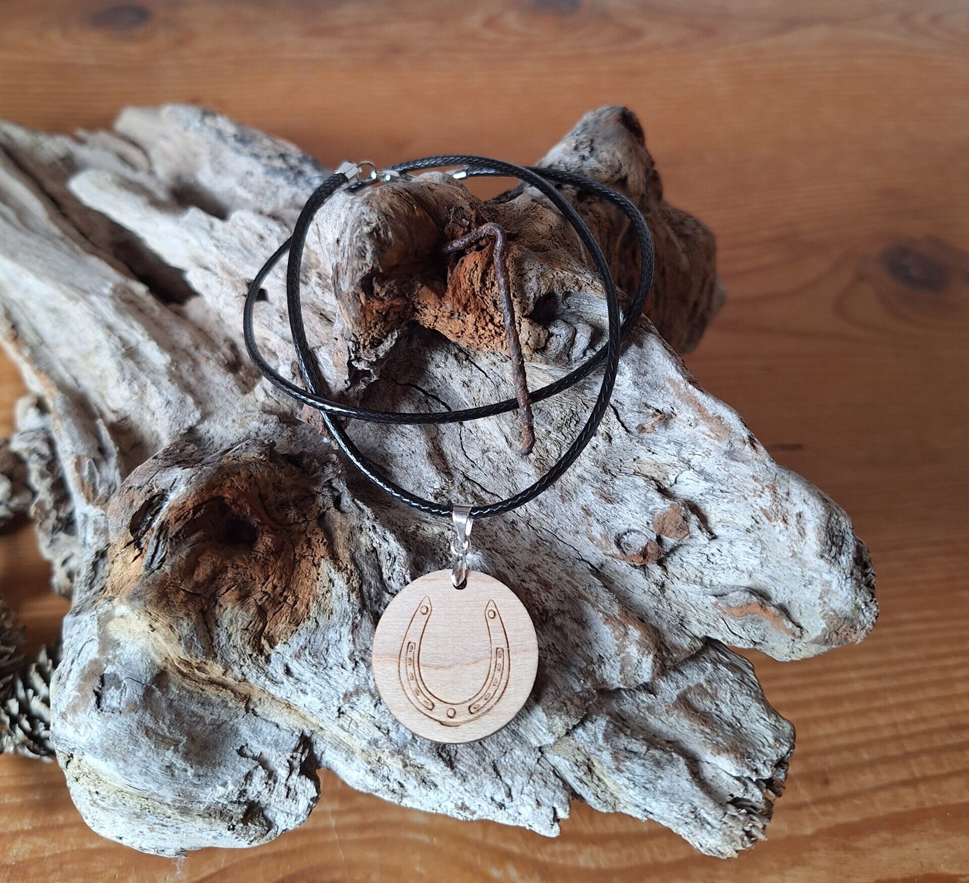 Diese tolle Kette aus edlem Ahornholz sind für jedes Pferdemädchen oder jede Reiterin das perfekte Accessoires. Die Kettenanhänger mit einem Durchmesser von 3cm werden bei uns am PC Entworfen, gelasert und anschließend per Hand geschliffen und zusammengesetzt.