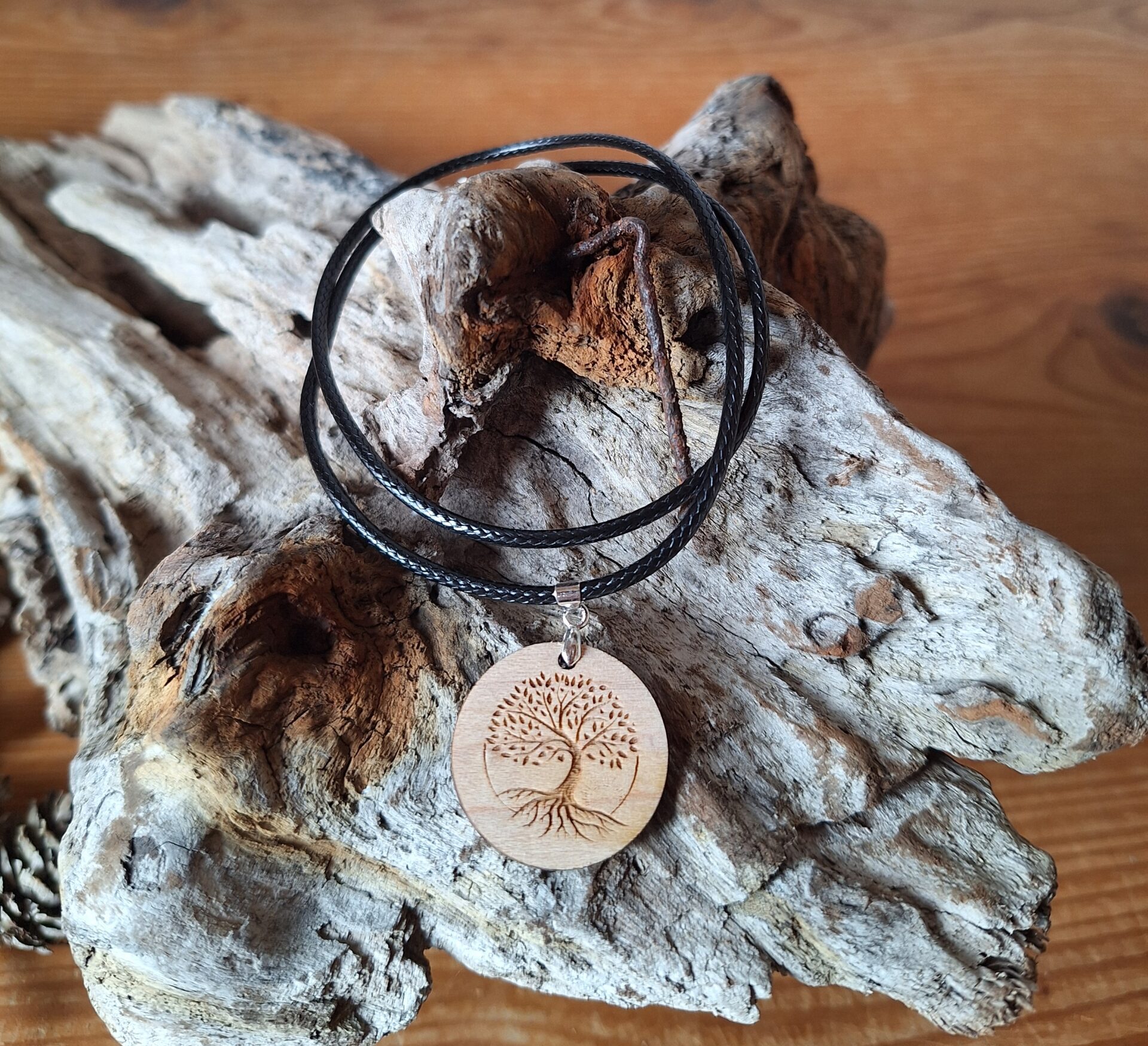 Diese tolle Kette aus edlem Ahornholz mit dem Lebensbaum der unter anderem ein Symbol für Wachstum, Kraft, Gesundheit und den Kreislauf des Lebens darstellt eignen sich perfekt für jeden Naturliebhaber. Die Kettenanhänger mit einem Durchmesser von 3cm werden bei uns am PC Entworfen, gelasert und anschließend per Hand geschliffen und zusammengesetzt.